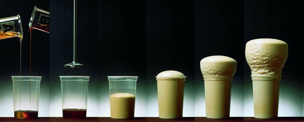 Пенополиуретан представляет собой одну из разновидностей газонаполненных (пенопластов) пластмасс. Основными материалами его изготовления, служат такие компоненты, как полиол и изоцианат, которые в процессе производства ППУ смешиваются под весьма высоким давлением.