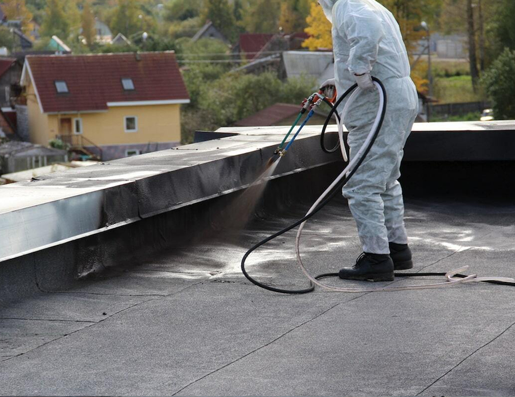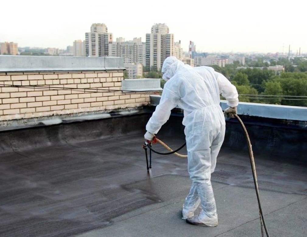 Покрытия жидкой резиной кровли многоквартирного дома.